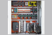 ●可編程序控制器及可旋轉(zhuǎn)的人機(jī)界面,數(shù)字顯示機(jī)器的工作速度,加工張數(shù),總運(yùn)行時(shí)間,機(jī)器的故障顯示使故障排除操作方便。實(shí)現(xiàn)給紙,模切,收紙各部分的自動(dòng)控制,及實(shí)時(shí)監(jiān)控,配合各部位的安全裝置,使操作安全可靠。